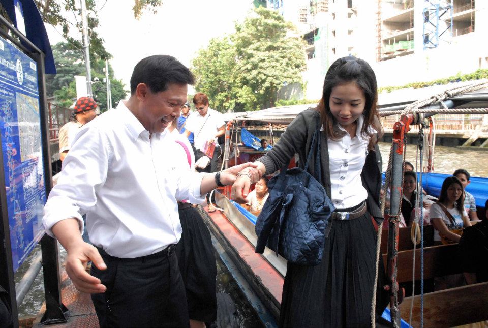 พล.ต.อ.พงศพัศได้ช่วยพยุงผู้โดยสารขึ้นและลงเรือแต่ละท่าด้วย จากนั้น