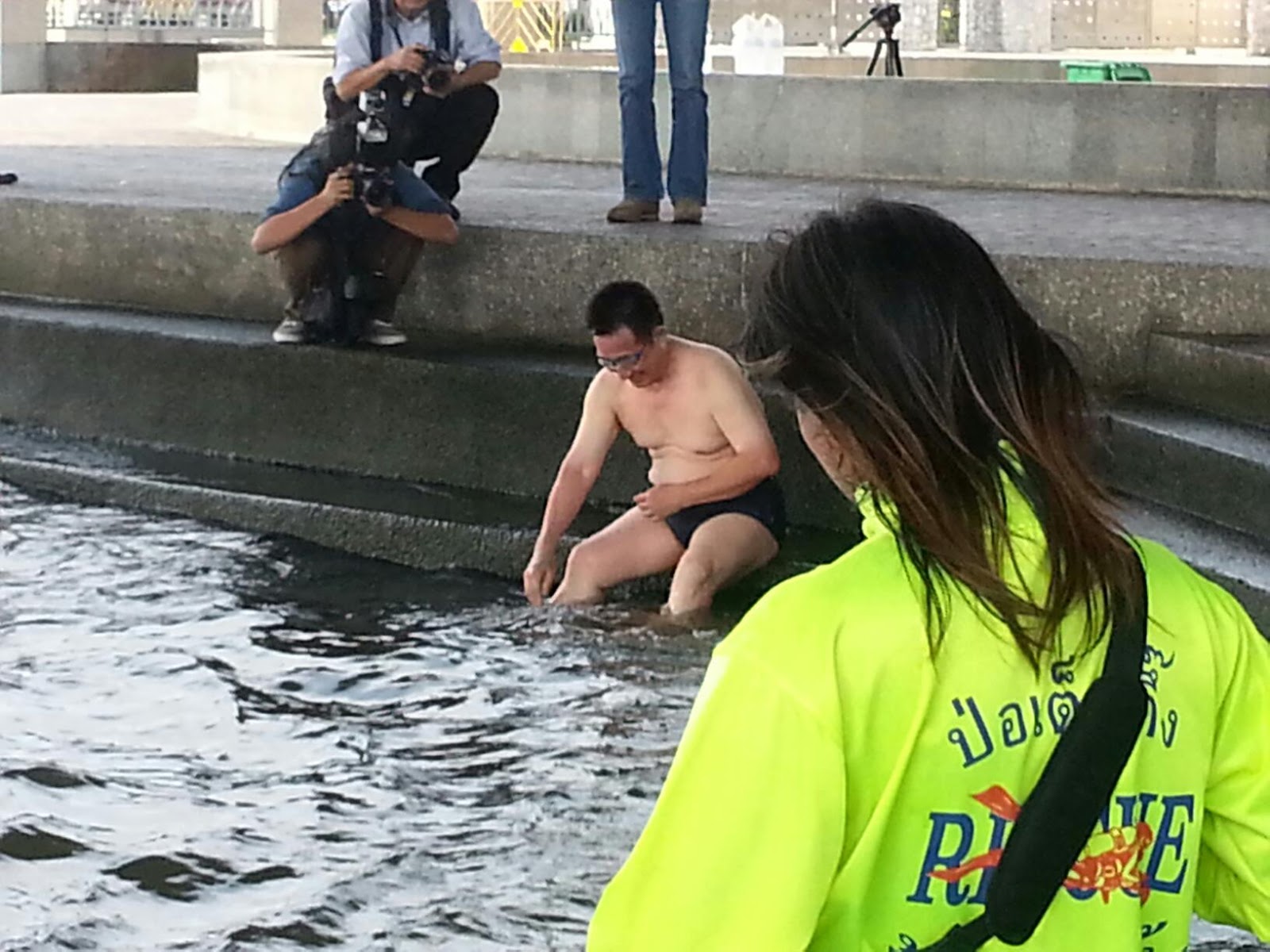 | ภาพ "ดร.โสภณ" โชว์ว่ายน้ำต่อหน้าสื่อมวลชน |