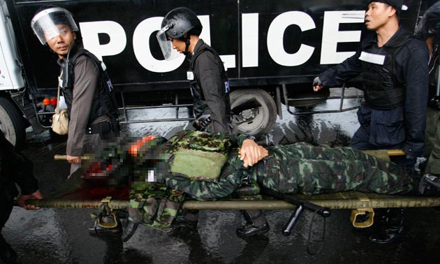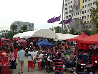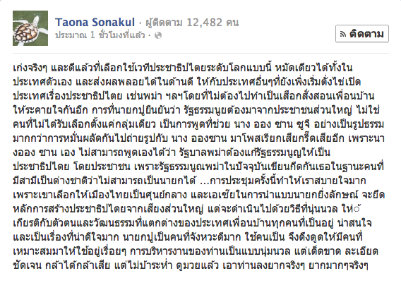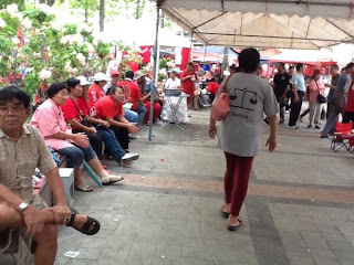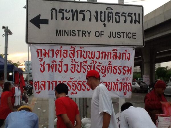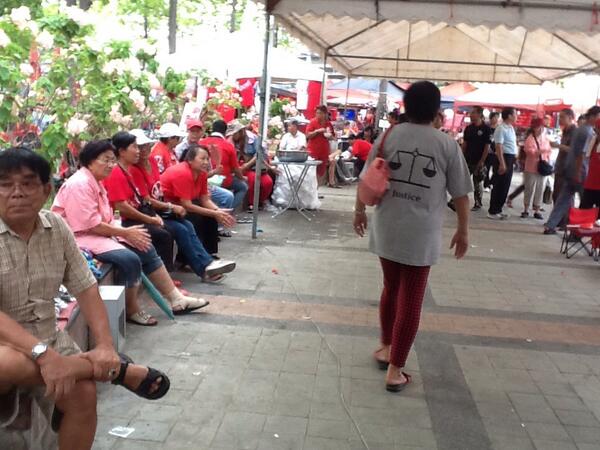 ในขณะที่กลุ่มคนเสื้อแดง ที่ชุมนุมหน้าศาล รธน.
