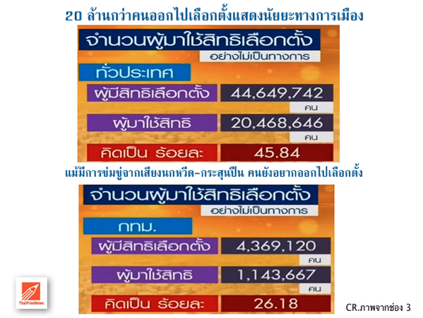สรุปเลือกตั้งทั่วประเทศ เครดิตภาพช่อง3 > 20 กว่าล้านคนไปเลือกตั้งมีความหมายสำคัญที่ทิ้งไม่ได้