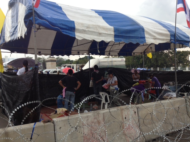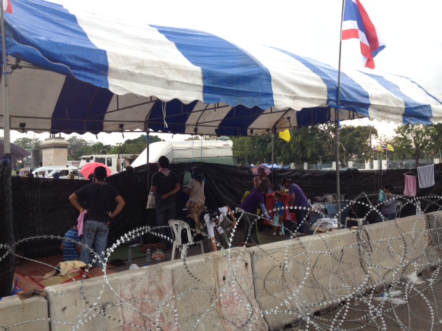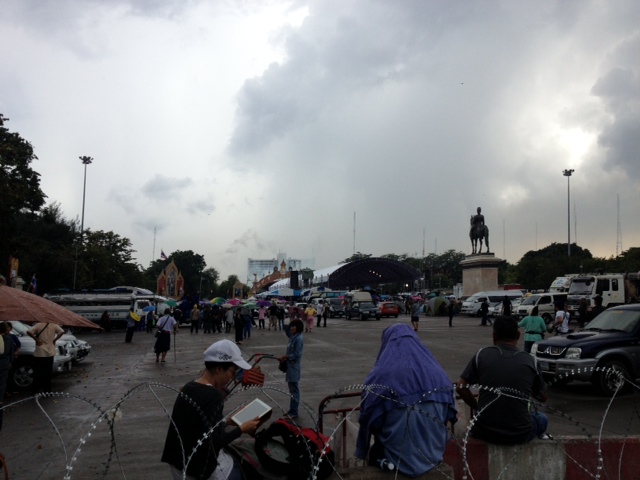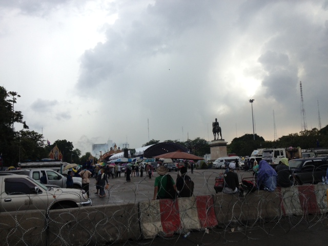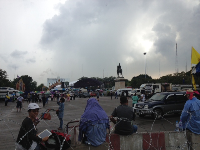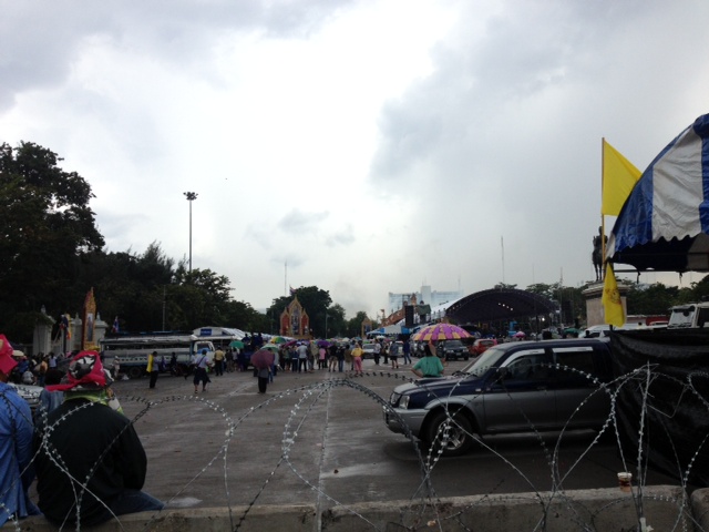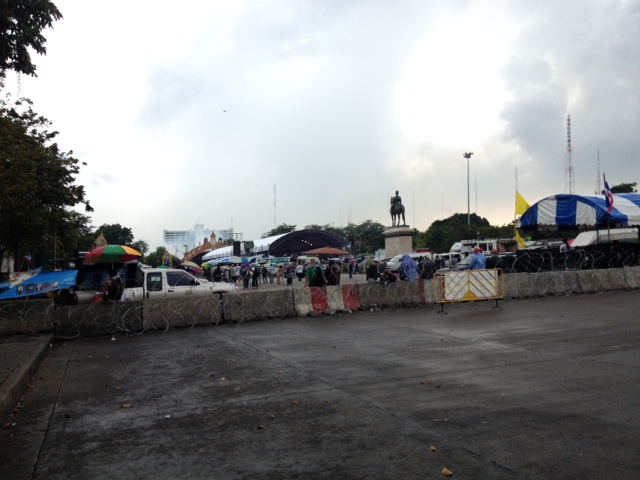 ในส่วนของลานพระบรมรูปนั้น ทางตำรวจได้กั้นแท่งปูนพร้อมลวดหนามไว้ประมาณ