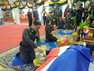 วัน ที่ 26 พฤศจิกายน 2555 (go6TV) ผู้สื่อข่าวรายงานว่า ผู้บังคับบัญชาระดับสูง สำนักงานตำรวจแห่งชาติ ร่วมพิธีรดน้ำศพ ส.ต.ท.สราวุธ ลาวงศ์ อายุ 37 ปี และ ส.ต.อ.มงคลชัย ม่วงแก้ว อายุ 35 ปี เจ้าหน้าที่ตำรวจภูธร สภ.ป่าโมก ซึ่งเสียชีวิตจากอุบัติเหตุ