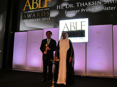 | ดร.ทักษิณ ชินวัตร อดีตนายกรัฐมนตรี รับรางวัล รัฐบุรุษ ABLF 2012 |