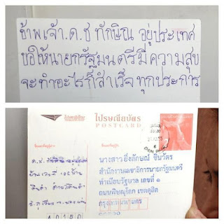 ด.ช.ภูวดล ขุนเที่ยงธรรม จ.ขอนแก่น เขียน สคส.ใจความว่า “ขอให้ท่านนายกฯมีความสุข