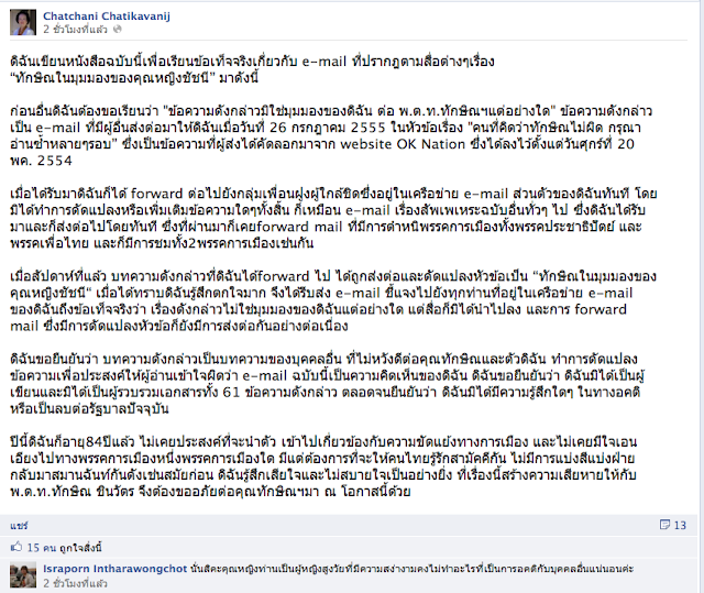ชี้แจงไปยังทุกท่านที่อยู่ในเครือข่าย e-mail ของดิฉันถึงข้อเท็จจริงว่า