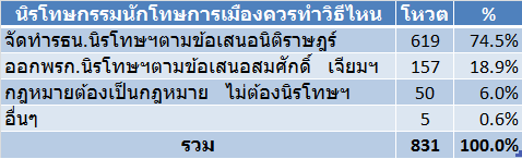 สำรวจจากผู้อ่านไทยอีนิวส์ระหว่างวันที่ 13-20 มกราคม 2556 โดยมีจำนวนการโหวตทั้งสิ้น 831 ครั้ง