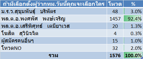 โพลล์ไทยอีนิวส์: ถ้ามีเลือกตั้งผู้ว่ากทม.วันนี้คุณจะเลือกใคร