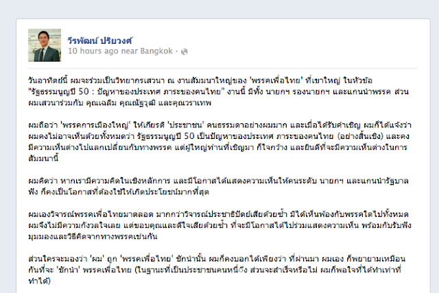 วีรพัฒน์ ปริยวงศ์เปิดพื้นที่Facebook ส่วนตัวตั้งหัวข้อ