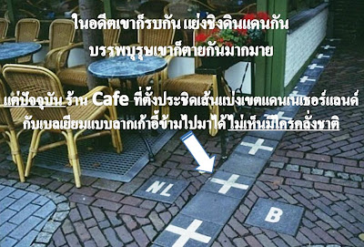 Cafe ที่ตั้งประชิดเส้นแบ่งเขตแดนเนเธอร์แลนด์กับเบลเยียมแบบลากเก้าอี้ข้ามไปมาได้
