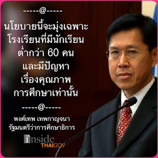 InsideThaiGov รมว.พงศ์เทพ ย้ำ การยุบและควบรวมโรงเรียนเล็ กมุ่งเฉพาะ รร ที่น้อยกว่า 60 คนและไม่มีคุณภาพ