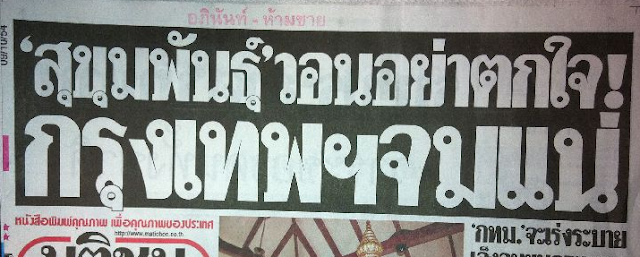 ผู้ สื่อข่าวรายงานเพิ่มเติมว่า จากการสรุปสถานการณ์ฝนตกน้ำท่วมขังจนถึงช่วงค่ำ กรุงเทพมหานครระบายน้ำได้ช้า 29-30 จุด โดยเฉพาะในบริเวณกรุงเทพชั้นใน ทำให้ในเครือข่ายสังคมออนไลน์ ประชาชนจำนวนมากต่างแสดงความคิดเห็นตำหนิการทำงานของหม่อมราชวงศ์สุขุม พันธุ์ บริพัตร ผู้ว่าราชการกรุงเทพมหานคร ที่บริหารจัดการระบบการระบายของกรุงเทพมหานครวางเอาไว้ให้ระบายน้ำได้เพียง 60 มิลลิเมตรต่อชั่วโมง ทำให้ถูกตั้งข้อสังเกตว่าอาจจะมีทรายจากน้ำท่วมปีที่แล้วไปอุดตันท่อระบาย น้ำ สอดคล้องกับข่าวของหม่อมราชวงศ์สุขุมพันธุ์ บริพัตร ผู้ว่าราชการกรุงเทพมหานคร ก่อนหน้านี้ที่ถูกพาดหัวข่าวในหนังสือพิมพ์ฉบับหนึ่งว่า "สุขุมพันธ์ วอนอย่าตกใจ กรุงเทพฯจมแน่"