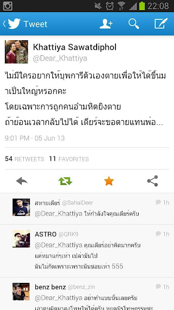 ล่า สุด วันที่ 5 มิ.ย. ผู้สื่อข่าว "ข่าวสด" รายงานว่า น.ส.ขัตติยาได้เขียนข้อความลงในทวิตเตอร์ส่วนตัว @Dear_Khattiya ระบุถึงกรณีนายเจิมศักดิ์และภาพดังกล่าวว่า "ได้เห็นภาพของผู้ที่ชื่อว่าเป็นอาจารย์โพสลงใน facebook ส่วนตัว ท่านคงจะว่าง..เพราะขณะที่อาจารย์ลงภาพ ดิฉันนั่งประชุมกมธ.เพื่อออกกม.อยู่ที่สภา ไม่ มีใครอยากให้บุพการีตัวเองตายเพื่อให้ได้ขึ้นมาเป็นใหญ่หรอกคะ โดยเฉพาะการถูกคนอำมหิตยิงตาย ถ้าย้อนเวลากลับไปได้ เดียร์จะขอตายแทนพ่อ..."