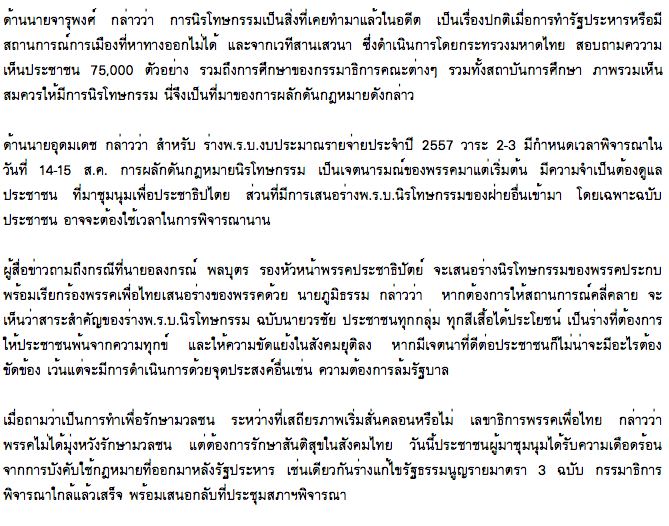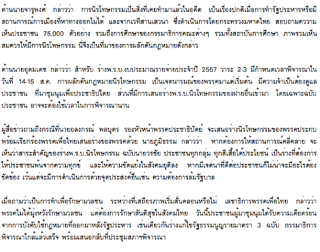 พรรคพท.มีมติหนุนร่างพ.ร.บ.นิรโทษกรรมฉบับวรชัย