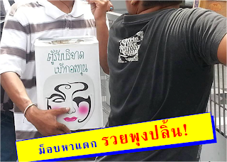 จะเดินเข้ามาร่วมพร้อมควักเงินแบงค์ร้อยหย่อนลงไปในกล่องพร้อมเชียร์ให้คนอื่นที่มุงดูอยู่ทำตามโดยพูดตะโกนด้วยความดีอกดีใจว่า
