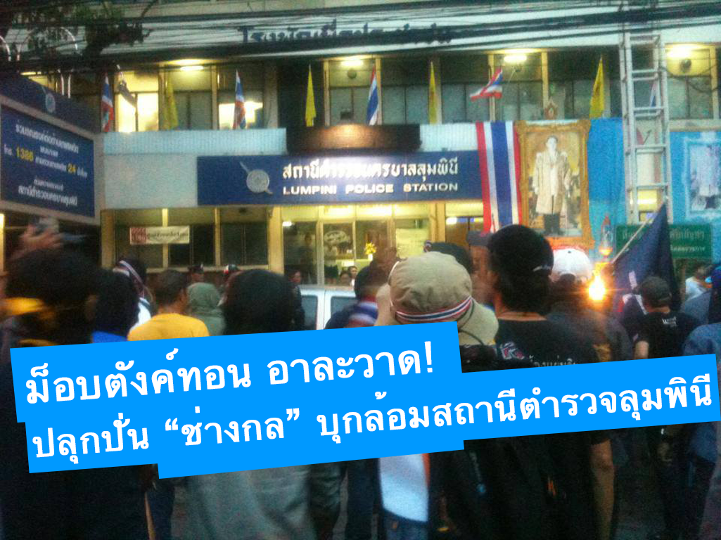 จาก นั้น กลุ่มเสื้อแดงทั้งหมด ได้เดินทางไปยัง สน.ลุมพินีในเวลาประมาณ 17.00 น. เพื่อลงบันทึกประจำวัน แต่ทาง สน.แจ้งว่า ท้องที่เกิดเหตุ เป็นพื้นที่ของ สน.ทุ่งมหาเมฆ ทั้งหมดจึงเตรียมตัวเคลื่อนขบวนไปยัง สน.ทุ่งมหาเมฆ ปรากฏว่าระหว่างที่กำลังเตรียมเคลื่อนย้าย ม็อบอาชีวะทราบข่าว ได้วิ่งกรูออกมาด้านประตูฝั่งโรงเรียน กทม.ข้ามถนน และปิดหน้า สน.ลุมพินี ทางตำรวจได้รีบระดมพลพาเสื้อแดงทั้งหมดขึ้นรถ ใช้รถตำรวจนำไปยัง สน.ลุมพินี และตำรวจได้เจรจาม็อบอาชีวะให้สลายตัวไป หลังจากปิดหน้า สน.ลุมพินีประมาณ 30-45 นาที