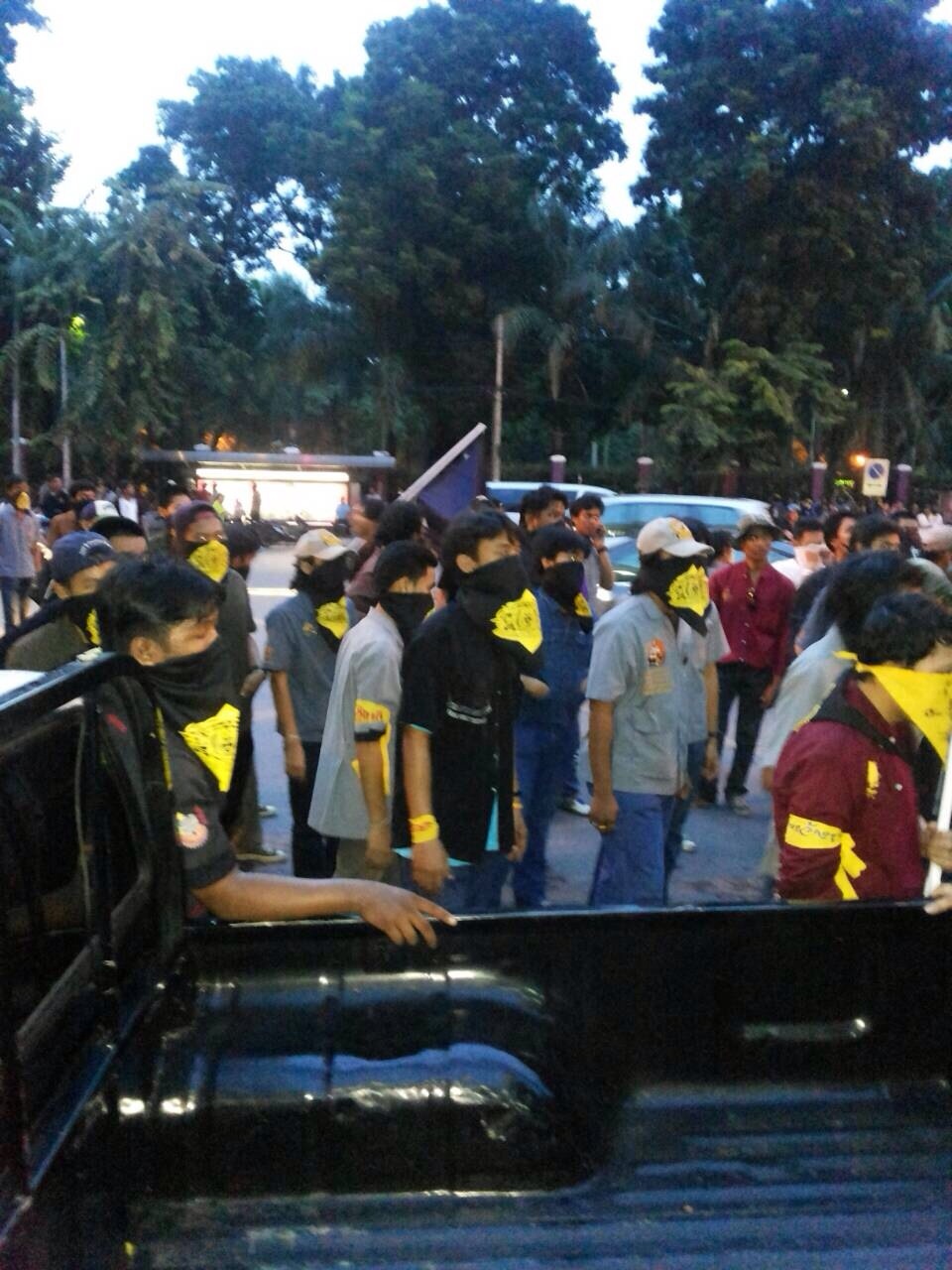 | วินาทีม็อบอาชีวะสวนลุมแห่ออกมาดักรถเสื้อแดง 4 |