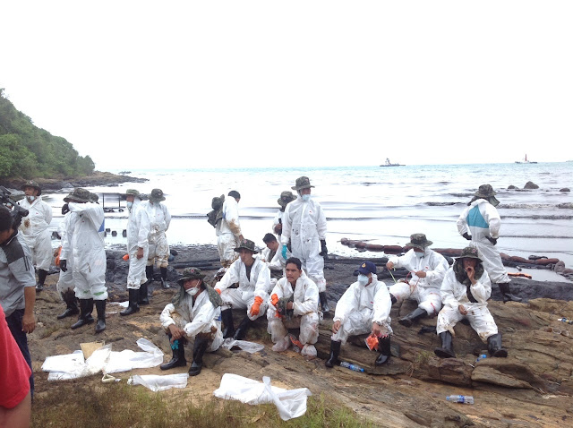 ทำการฟื้นฟูสภาพแวดล้อมบริเวณอ่าวพร้าวอันเนื่องมาจากการปนเปื้อนของคราบ