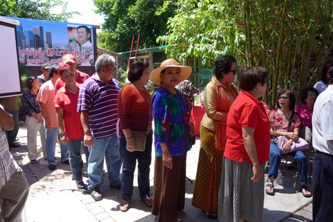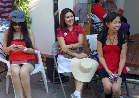 เมื่อวันอาทิตย์ที่ ๒๘ กรกฎาคม ศกนี้ คนเสื้อแดงในท้องที่มหานครลอส แองเจลีส และเมืองใกล้เคียงไปร่วมงานฉลองวันเกิดครบรอบ ๖๔ ปีให้แก่อดีตนายกรัฐมนตรี พ.ต.ท. ดร.ทักษิณ ชินวัตร กันอย่างหนาแน่นในบริเวณสวนหลังบ้านแห่งหนึ่งย่านเบลฟลาวเวอร์ โดยเริ่มตั้งแต่เวลาเที่ยงวันเรื่อยไปจนกระทั่งเย็น