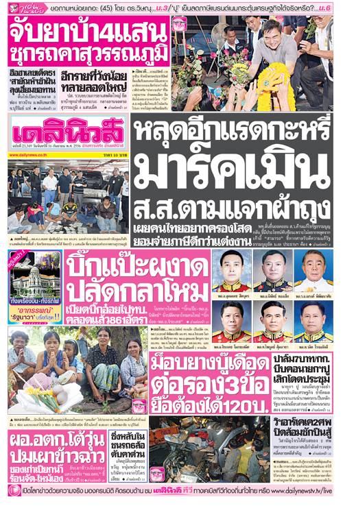 พาดหัวเดลินิวส์ กรอบเช้า 16 กันยายน 2556