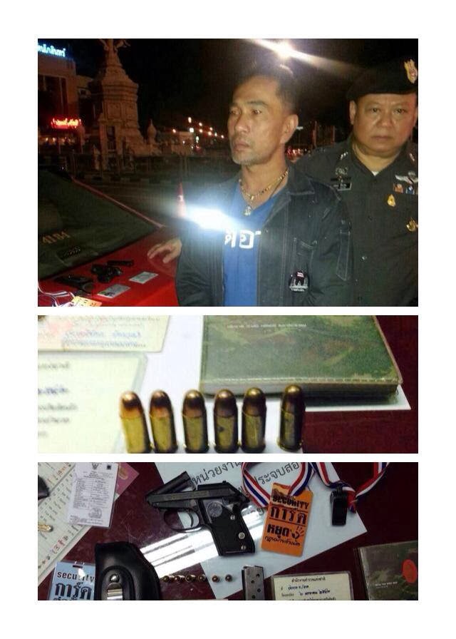 ด่าน ความมั่นจุดแยกผ่านพิภพของ สน. มักกะสัน ได้ร่วมกันจับกุม สอ. ธานินทร์ ขำสุภาพ อายุ 49 ปี สังกัด พล. 1 ในข้อหาพกพาอาวุธปืนโดยไม่ได้รับอนุญาตฯ พร้อมของกลาง