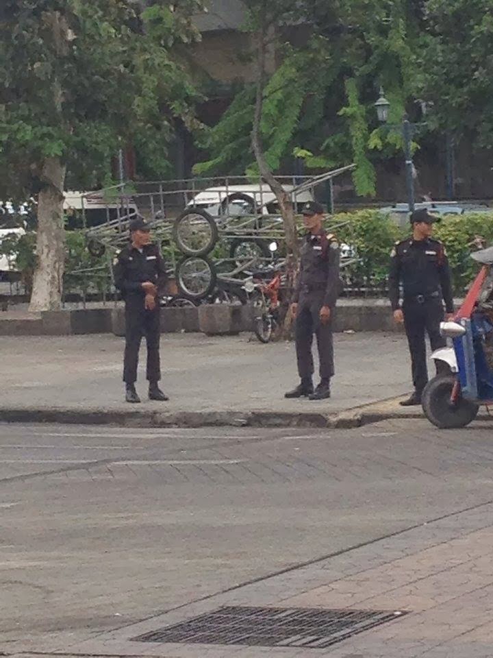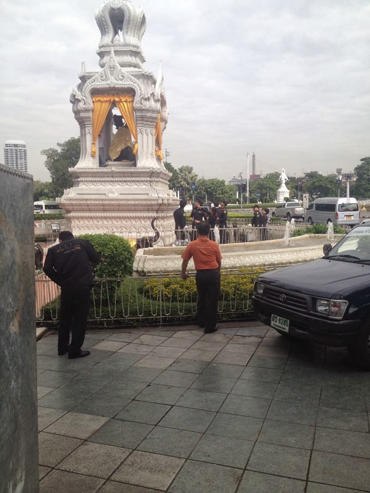 ในขณะที่ตำรวจเทศกิจได้เอารั้วมากั้นด้านหน้าแล้ว และ ผู้ว่าฯ กทม.