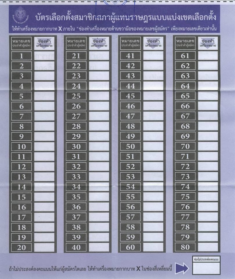 บัตรเลือกตั้งสมาชิกสภาผู้แ ทนราษฎรแบบแบ่งเขตเลือกตั้ง (ด้านใน)