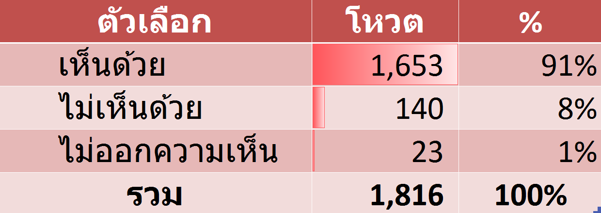 สำรวจจากท่านผู้อ่านไทยอีนิวส์ระหว่างวันที่ 31 ธันวาคม ถึง 4 มกราคม 2557 โดยมีผู้แสดงความคิดเห็น 1,816 ท่าน