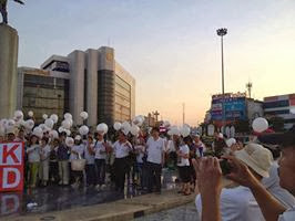 กลุ่ม Thai Freedom จัดกิจกรรม ปล่อยลูกโป่ง ขาวที่วงเวียนใหญ่ เพื่อรณรงค์ให้ทุกคนเคารพเสรีภาพ และสนับสนุนการเลือกตั้ง