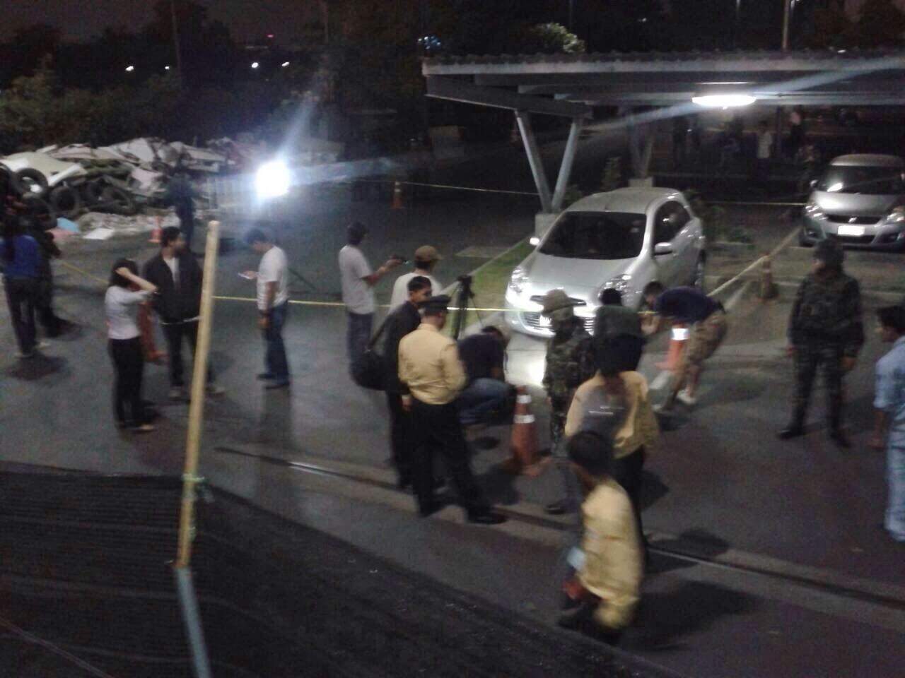 พบว่า ระเบิด ลงที่ไทยพีบีเอส ตรงบริเวรลานจอดรถตู้ส่วนกลาง