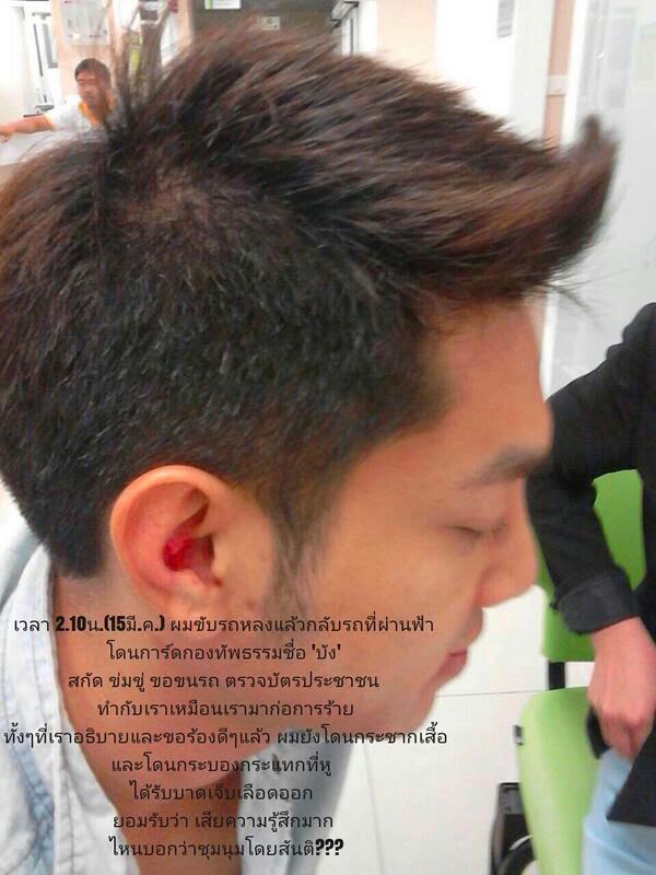 ผมยังโดนกระชากเสื้อและโดนกระบองกระแทกที่หู ได้รับบาดเจ็บเลือดออก