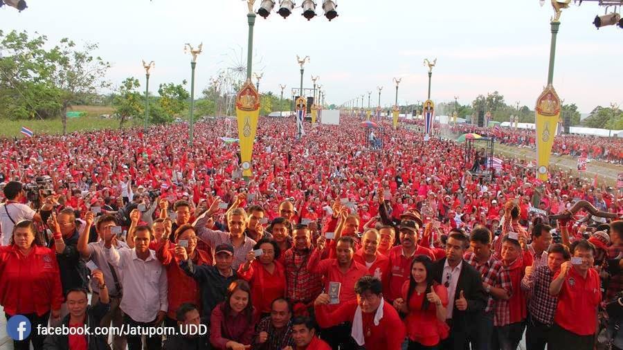 การชุมนุมใหญ่ของ นปช.ที่ถนนอักษะ ณ เวลา 18.00 น. 5 เมษายน 2557 :ที่มา facebook Jatuporn Prompan - จตุพร พรหมพันธุ์